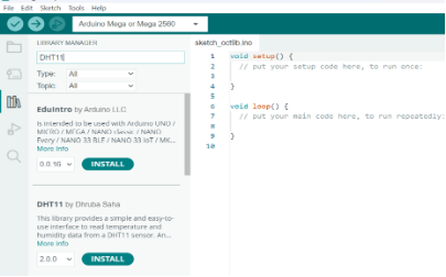 Înainte de a începe programarea trebuie să instalăm biblioteca DHT necesară pentru senzorul DHT11.